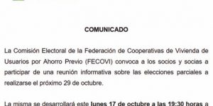 La Comisión Electoral de la Federación de Cooperativas de Vivienda de Usuarios por Ahorro Previo (FECOVI) convoca a los socios y socias a participar de una reunión informativa sobre las …