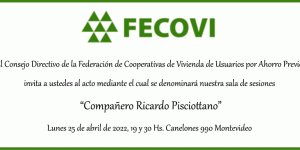El Consejo Directivo de FECOVI en su sesión del pasado 4 de abril, dispuso la convocatoria a la ASAMBLEA GENERAL ORDINARIA para el próximo 5 de mayo, primer llamado 18:30, …