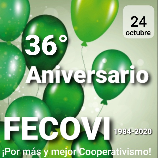 El día de mañana 24 de octubre, FECOVI conmemora su 36° aniversario. Damos un cálido saludo a todas nuestras Cooperativas por la historia compartida y el camino recorrido durante tantos años, invitándolos a seguir trabajando colectivamente, apoyándonos en nuestros valores cooperativos para seguir creciendo.