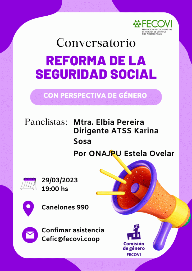 En el marco del Mes de las Mujeres, CEFIC y la Comisión de Género de FECOVI les invitamos a participar del Conversatorio sobre la Reforma de la Seguridad Social.