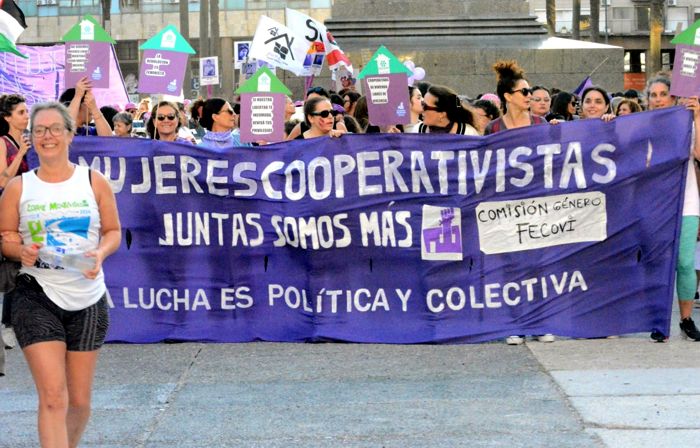 A lo largo del recorrido, miles de mujeres y disidencias participaron de la jornada, colmando las calles de Montevideo en una nueva expresión colectiva de organización y reivindicación de derechos, en la que las cooperativistas hicieron oír su voz por la defensa de la vivienda digna.