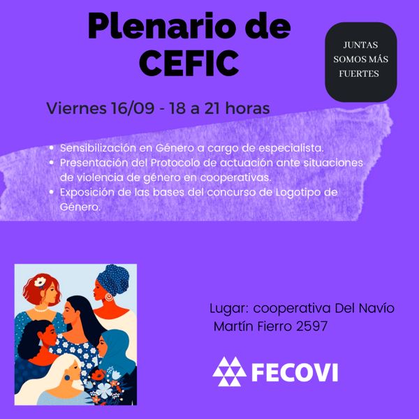 Plenario de Género de CEFIC Públicado en septiembre 7, 2022septiembre 7, 2022 por comunicacion Viernes 16 de septiembre. Cooperativa Del Navío (Martín Fierro 2597)