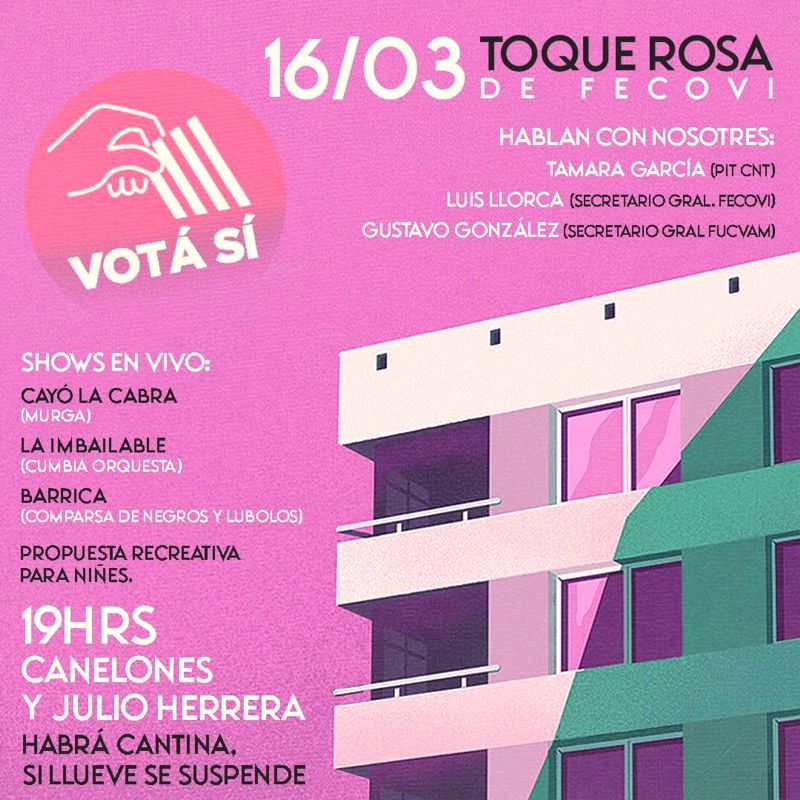 Contaremos con shows en vivo y con la oratoria de Luis LLorca (Secretario Gral. FECOVI), Tamara García (Secretariado Ejecutivo PIT-CNT) y Gustavo González (Secretario Gral. FUCVAM)